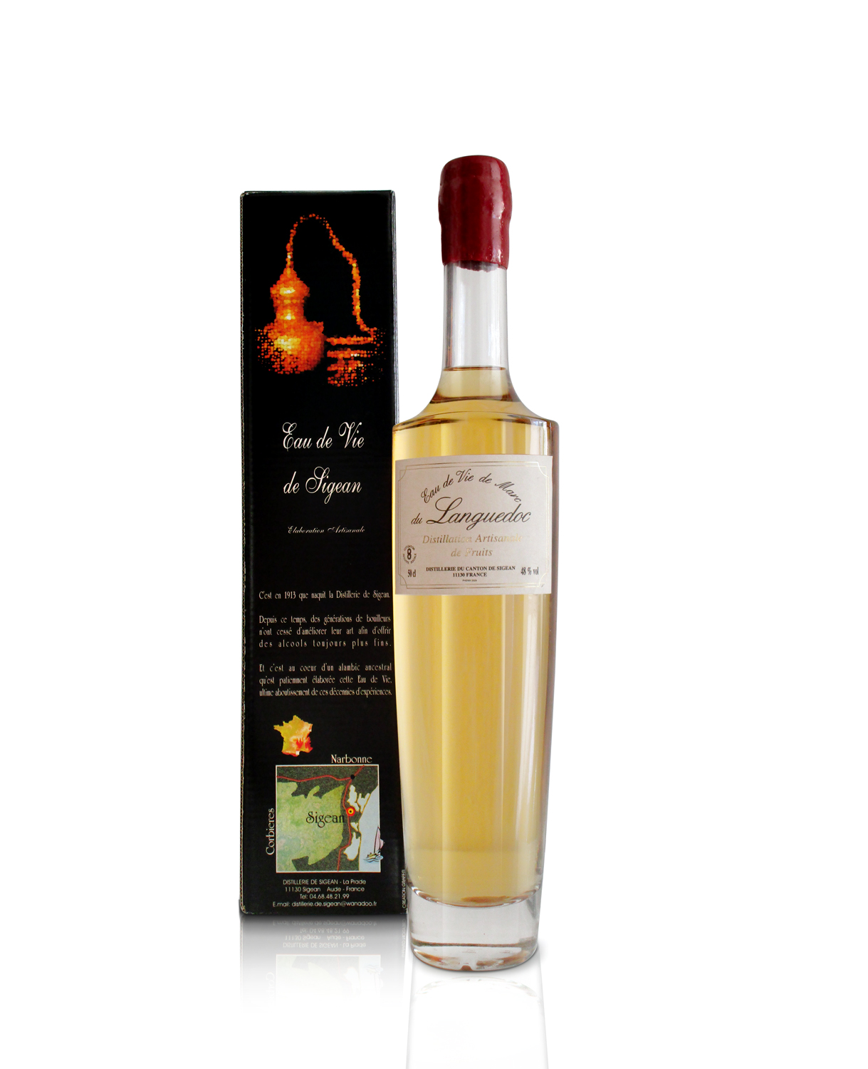 Die Distillerie de Sigean wurde 1913 gegründet. Seit dieser Zeit haben Generationen von Brenner die Kunst des Brennens verfeinert. Dieses „Eau de Vie“ wird in der traditionellen Brennblase „Appareil à vases“ gebrannt. Diese alte, seltene Apparatur wurde lediglich leicht modernisiert, um die Qualität und die Leistung auf ein Top-Niveau zu bringen.
